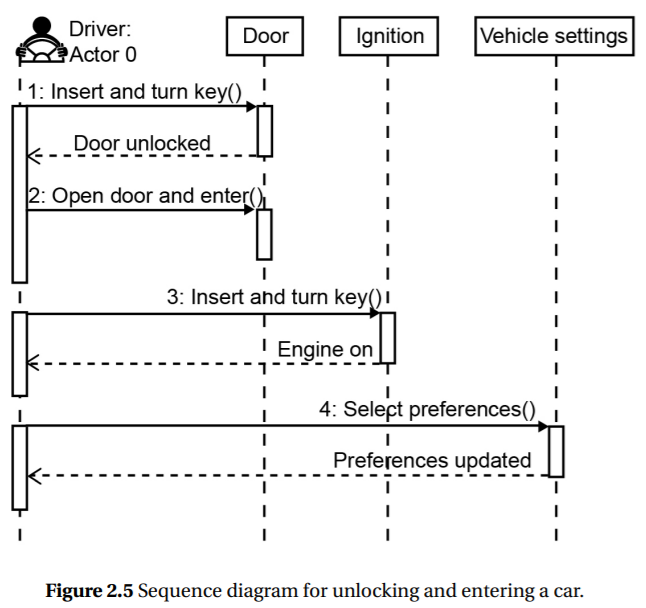 Figure 2.5 Sequence diagram for unlocking and entering a car.